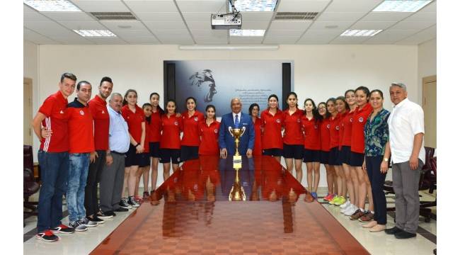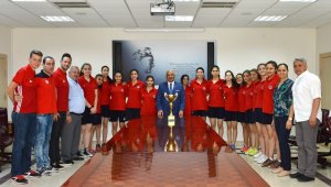 Mersin Büyükşehir Belediyespor Kulübü U14 Kızlar Basketbol Takımı, Isparta'da düzenlenen Türkiye Şampiyonası'nda elde ettiği ikincilik kupasını makamında ziyaret ettikleri Büyükşehir Belediye Başkanı Burhanettin Kocamaz'a sundu.