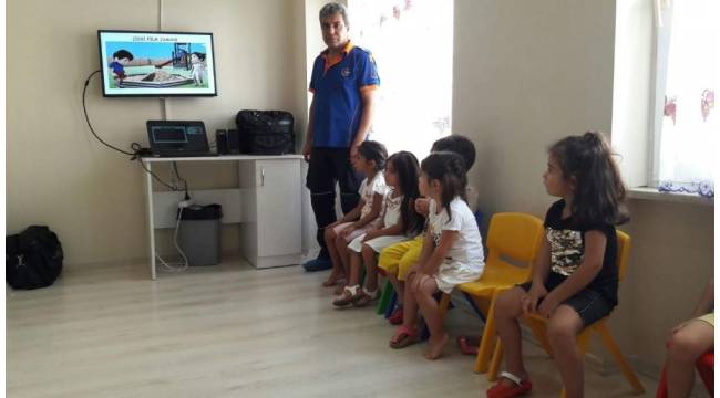 Kreş ve gündüz bakım evi personellerine de yangın söndürme cihazı kullanımı ve yangın anında nasıl davranılması gerektiği anlatılırken, miniklerin temel afet bilincini kavrayabilmeleri için anlayabilecekleri düzeyde gerçekleştirilen eğitim ile olası bir afet durumunda doğru zamanda doğru karar vermenin önemi vurgulandı.