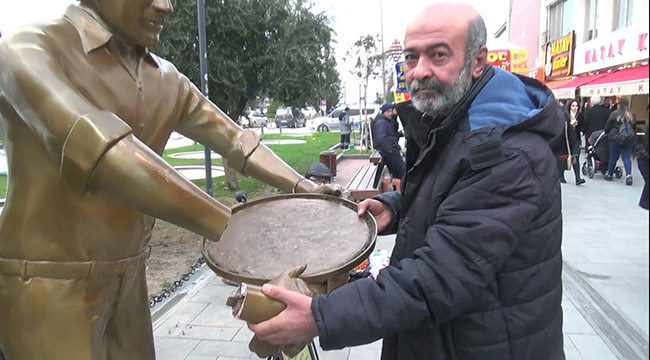 yerine geri takıldı. Künefe çeviren adam heykelinin iyisiyle, kötüsüyle
