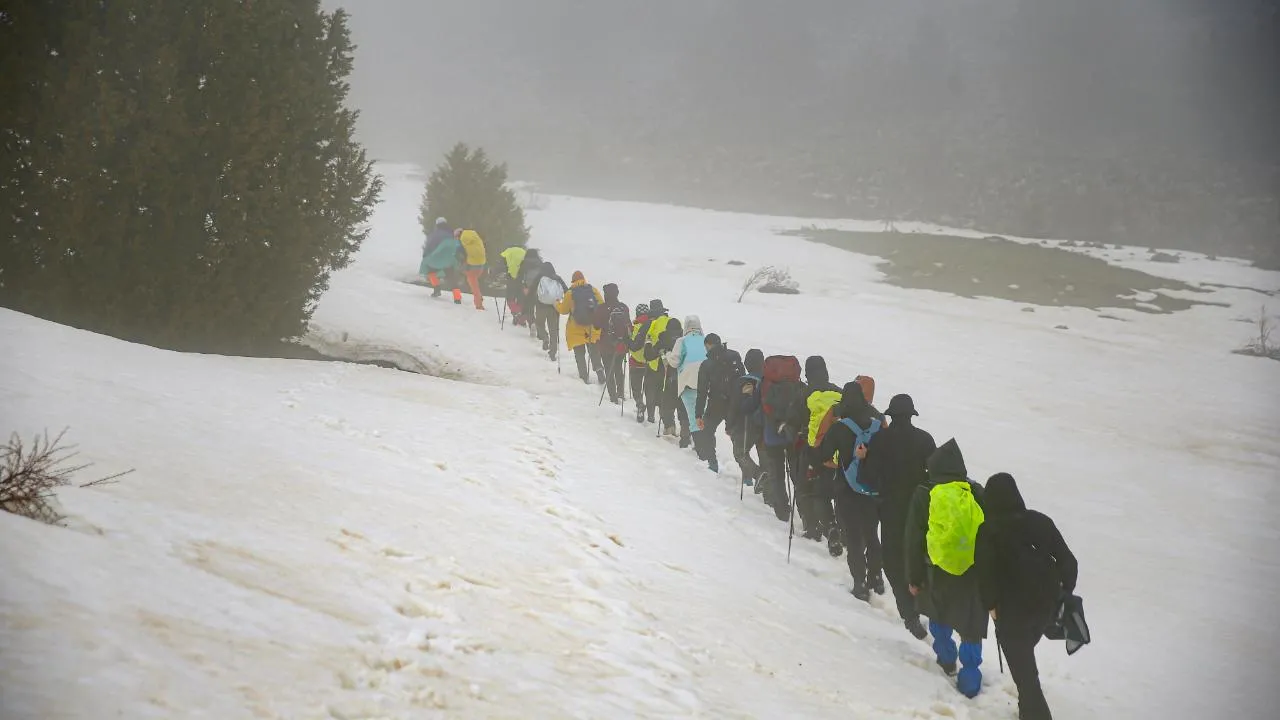 Adana ve Mersin'den hareket eden Kilikya Dağcılık ve Doğa Sporları Kulübü'nün 23 üyesi, Aladağlar Milli Parkı'nın Niğde sınırlarında yer alan Emli Vadisi'ne ulaştı. Bölgede kamp kuran ekip, daha sonra kar, sis ve rüzgârın etkili olduğu parkurlarda ilerleyerek 2 bin 400 rakımlı Oluksekisi Yaylası'na çıktı.